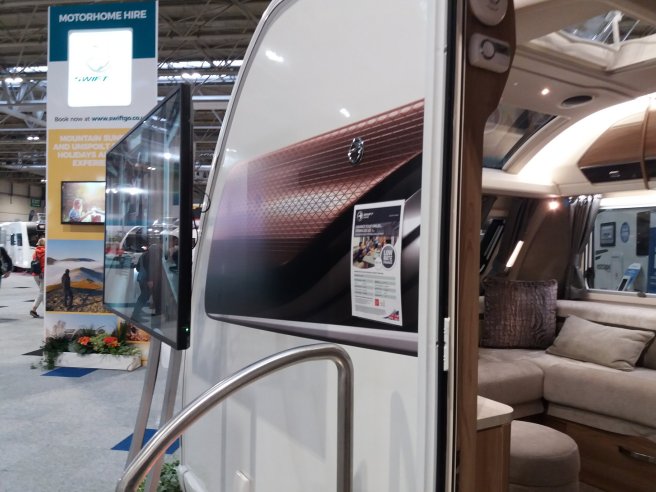 Specification wise, as the Elegance Grande sits at the top of the Swift range, features such as Alde central heating, Al-Ko ATC, onboard water tank and an Omnivent are standard. Unusual features are a reversing camera and for the first time from Swift a lifetime water ingress guarantee, subject to T&C’s, due to the totally timberless SMART 3 construction.
