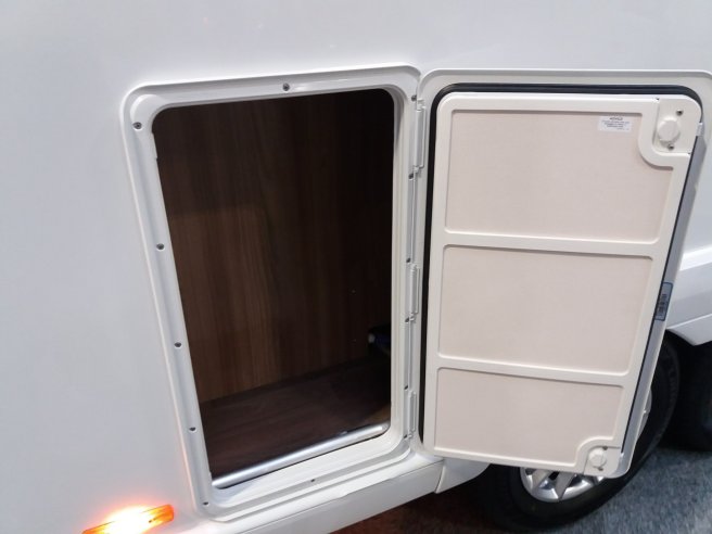 As with most Swift caravans a optional cycle rack can be fitted to the rear panel. There is also a handy external storage locker to the offside.