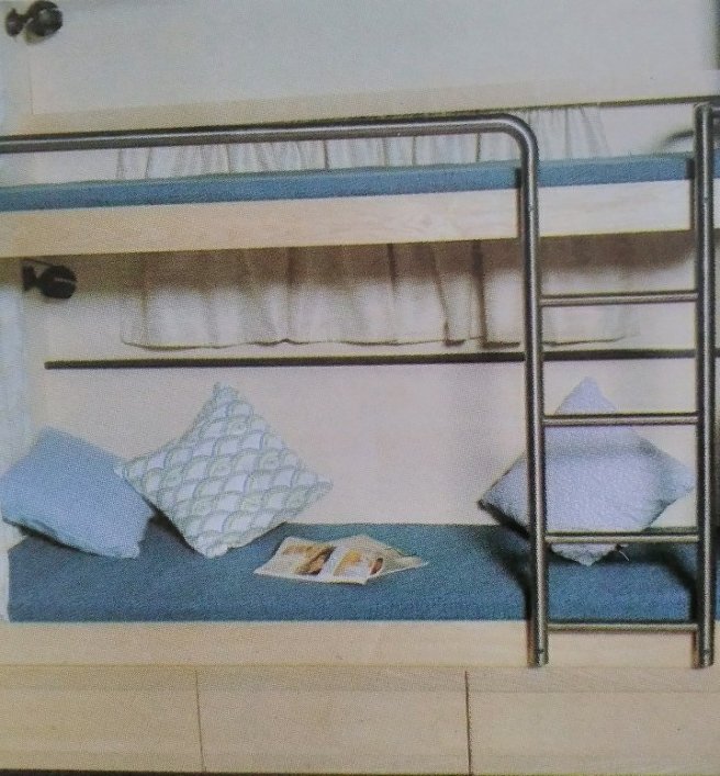For the nearside the choice was double bunks, a desk and chair or another settee.