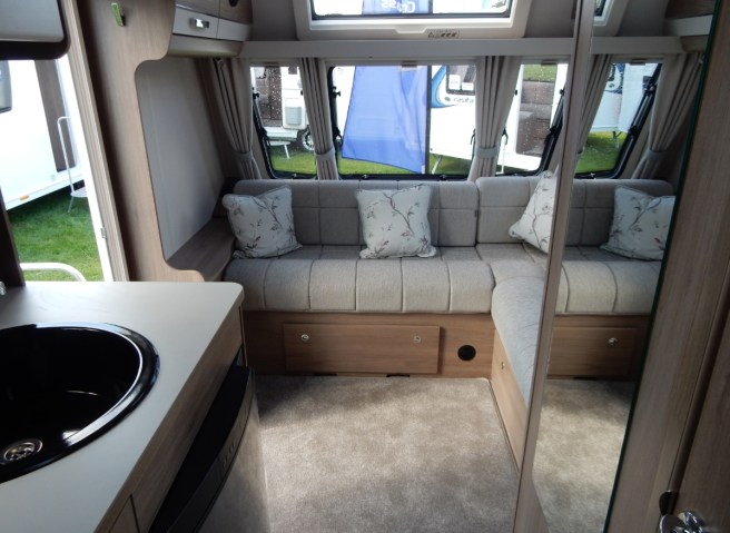 For the Elddis Avanté and Compass Casita ranges there are new models at each end of the ranges. A new two berth, the 454, may look like a family caravan except the front L shaped lounge is purely for seating. At the rear a transverse island bed is fitted.
